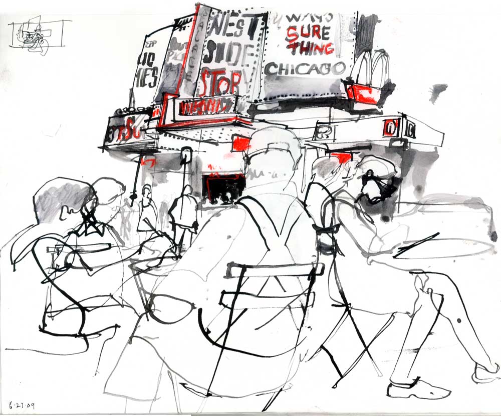 Mi piace restarmene dietro il bancone e osservare chi si aggira tra gli scaffali, entrare per un attimo in collisione con altre esistenze. L’anno scorso, per ringraziarmi dei consigli nella scelta dei regali, un ragazzo è tornato a regalarmi un cd di Bruce Springsteen (!) e una lettera in italiano, visibilmente tradotta con Google, con annesso numero di telefono, dove mi scriveva che a Napoli, la statua del Cristo gli aveva promesso di inviare sulla sua strada una piacente donna italiana, che sarei io. Una signora della Carolina del Sud mi ha raccontato di una traversata in auto lungo tutta la Puglia a fotografare i siti archeologici, con suo marito, storico dell’arte medievale. Pochi giorni fa, entra precipitoso un signore. Mocassini di pelle, jeans leggermente cadenti tenuti su da un cinturone nero, una t-shirt viola attillata infilata dentro i pantaloni, un lungo cappotto grigio e una shopping bag bianca di tela. Aveva occhi vispi nascosti dietro un paio di occhiali evidenti dalla montatura nera pesante, pochi capelli e un accento straniero che me lo ha reso immediatamente simpatico. “Bonjour madame”, ha esordito, “avete cartoline per condoglianze?”. Ho fatto un veloce inventario in testa: noi abbiamo carte di compleanno psichedeliche, cartoline d’auguri in legno, cartoline di Parigi panoramiche, cartoline di Parigi acquerellate, cartoline con disegni giapponesi, nient’altro. “Ho fatto il giro di tutto il quartiere, ma non sono riuscito a trovarle. Sembra quasi che, da queste parti, morire sia proibito”.